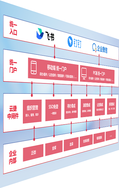 对协作平台提供支持服务,,,,支持企业应用与协作平台对接,,,,包含组织同步、、、消息集成、、、待办集成等。。。支持目前主流的协作平台:钉钉、、企微和飞书。。。。